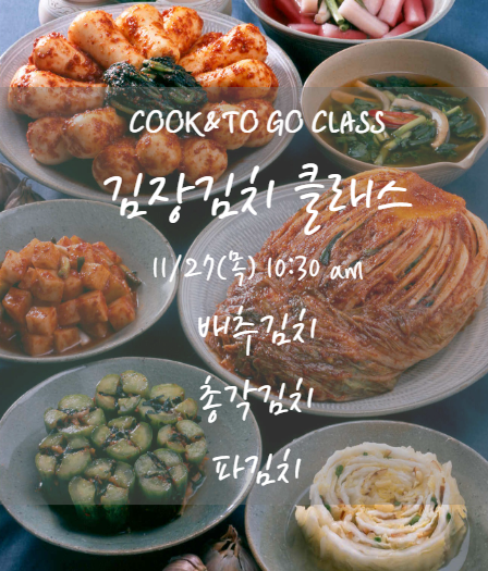클래스 메뉴 ①배추김치 7kg ②총각김치 4kg ③파김치 1.8kg